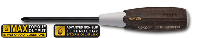 The 300 Series non-slip grip screwdriver features an advanced non-slip handle for maximum torque output in wet or oily/greasy conditions.