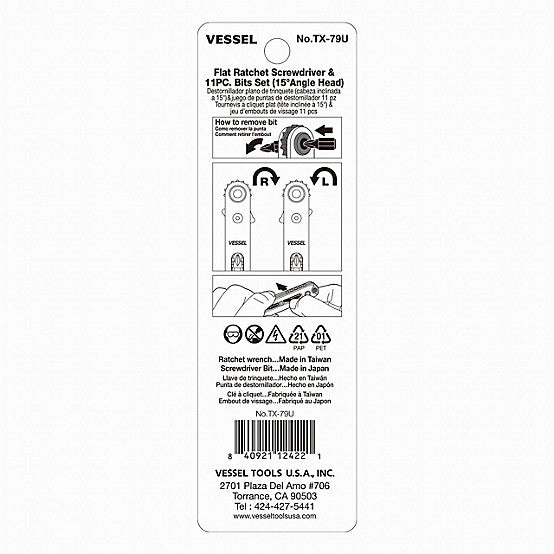 The TX-79U angled flat “PETA-RACHE” plate ratchet screwdriver has a very slim and compact design. The head of the tool is only 18mm in depth (including the attached insert bit) making it convenient for reaching screws in space restricted areas.