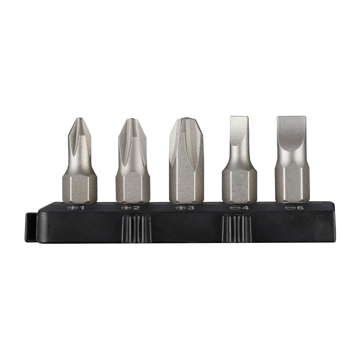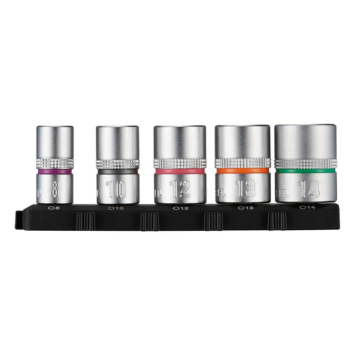- Includes 5 sockets (8, 10, 12, 13, 14mm) and 5 bits (+1, +2, +3, SL4, SL6)
